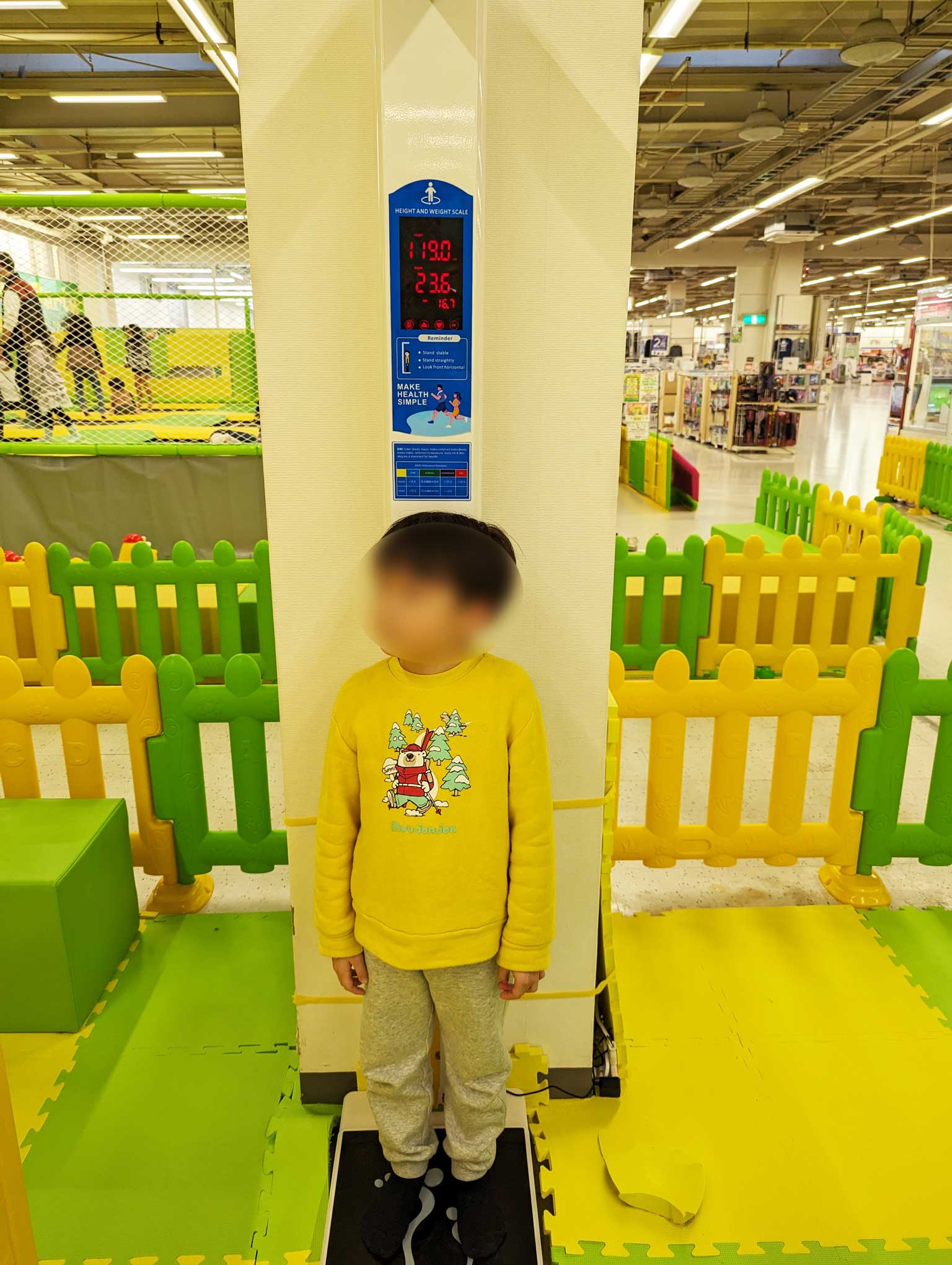 遊具の近くには、身長と体重を自動で計測できる機械も。