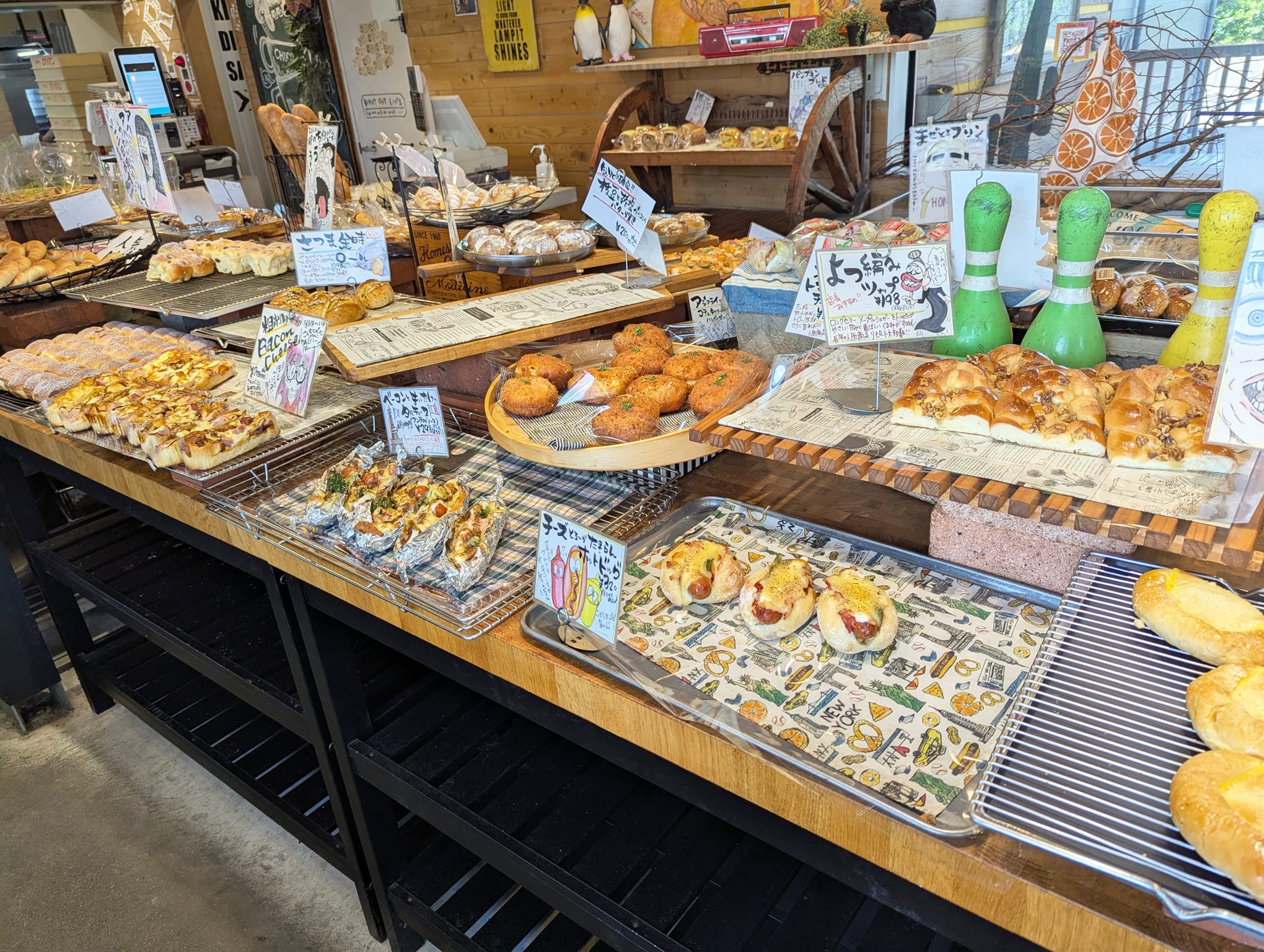 枝豆×チーズ、じゃがいも×ベーコン、カツサンドやホットドッグ風、ピザパン風のものまで…まるでパンのテーマパークみたい♪