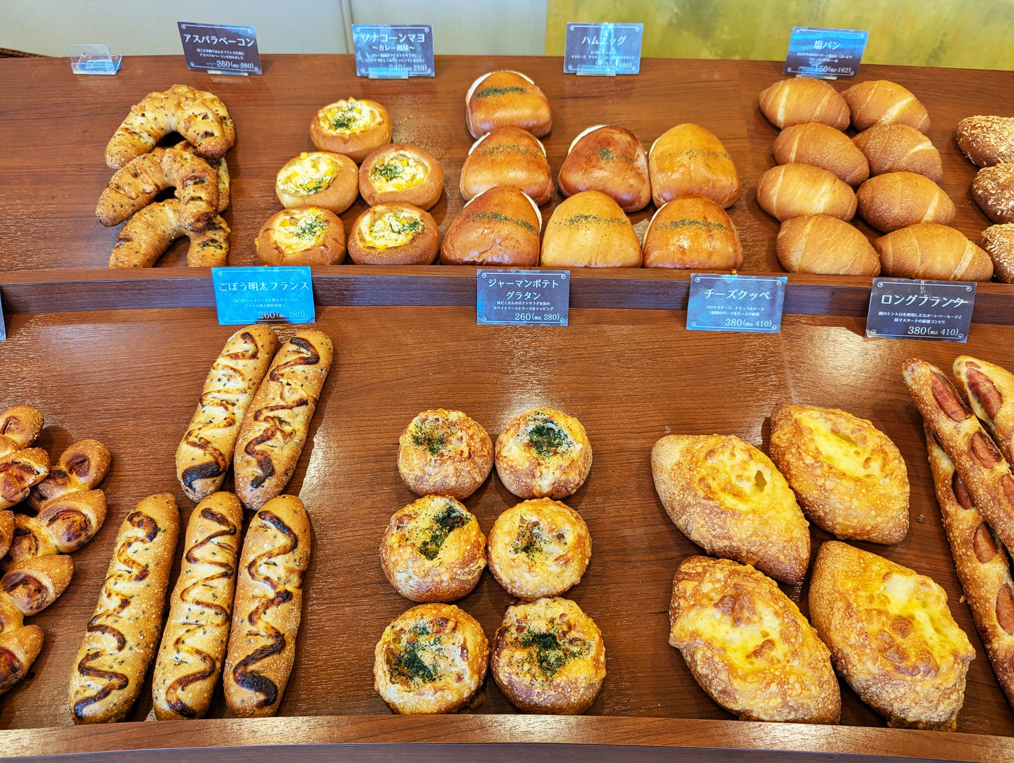 アスパラベーコンやツナコーンマヨ、ゴボウ明太フランスなど、どれも具だくさんで食べごたえあり♪
