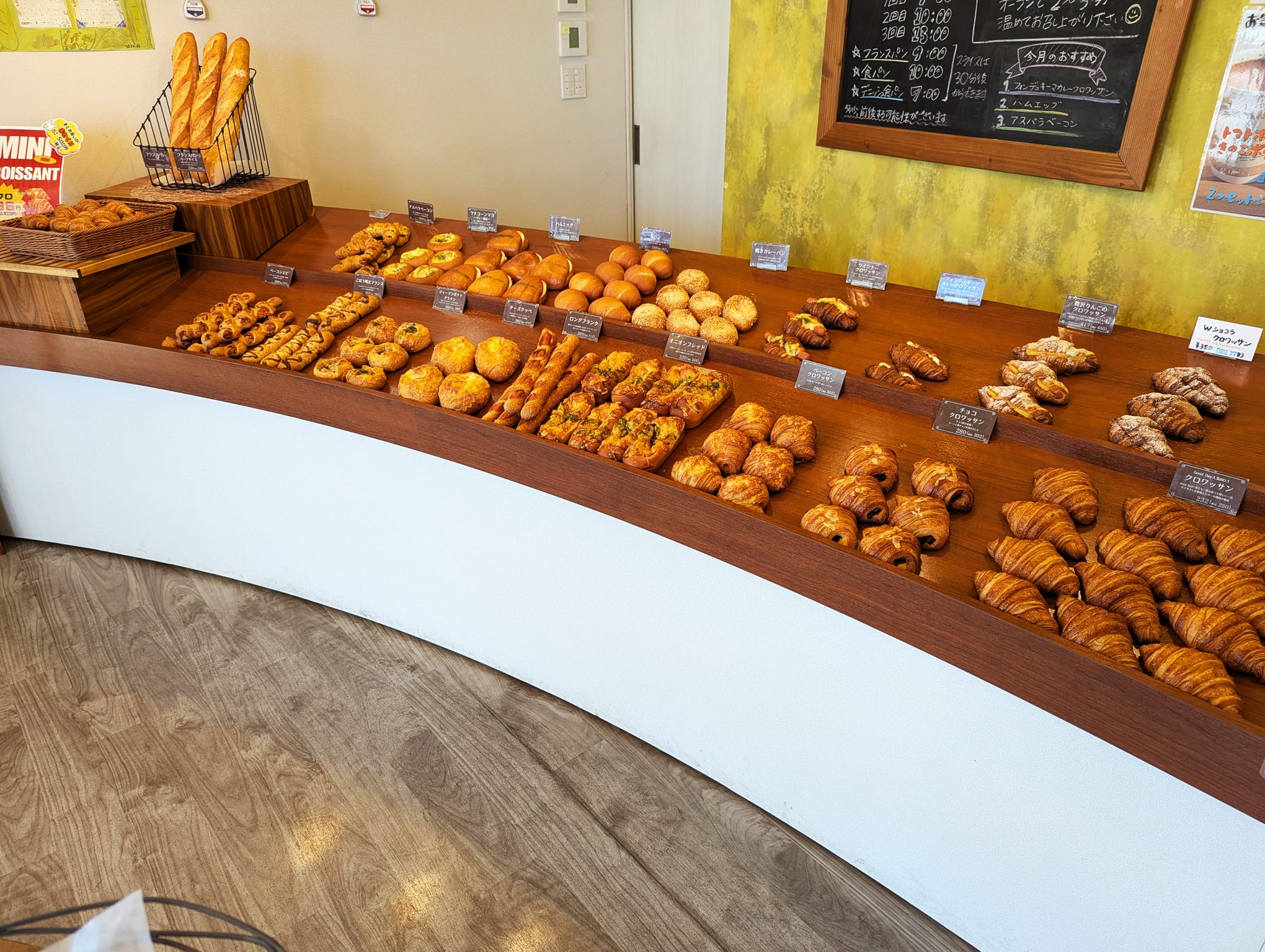 外から見てもわかるほど、焼きたてのパンがずらりと並ぶ店内に、思わずテンションが上がります♪