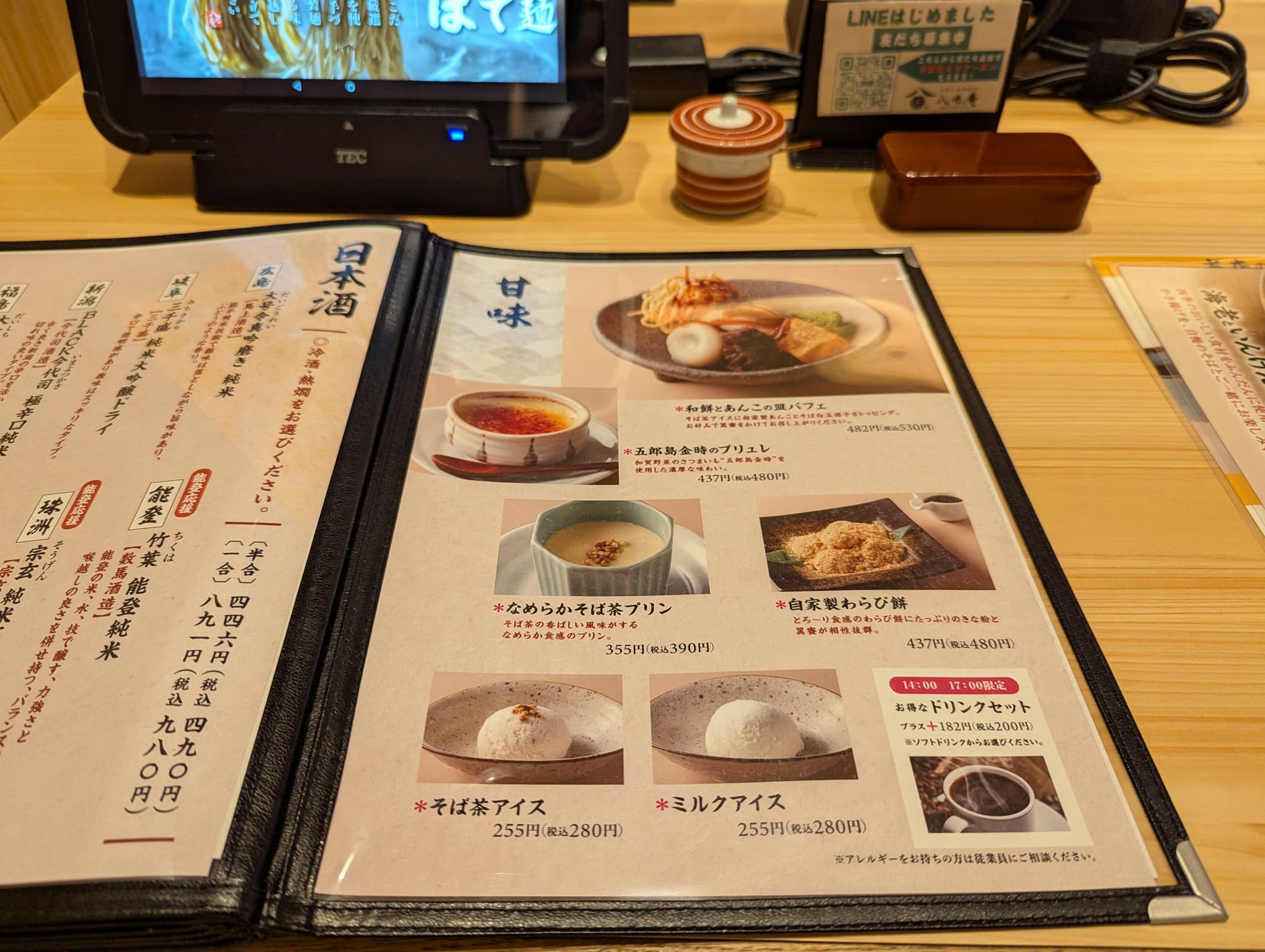 「そば茶プリン」や「自家製わらび餅」などのデザートも充実♪