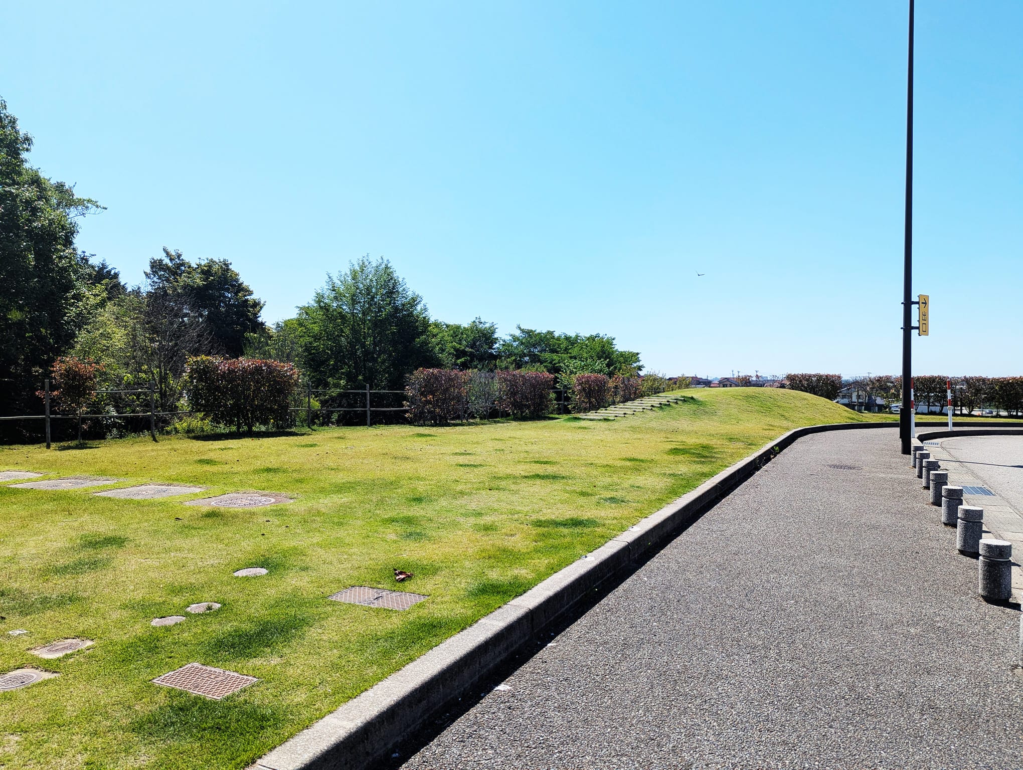 ちょっとひと息つきたい時は、施設そばの芝生の小さな丘へ♪