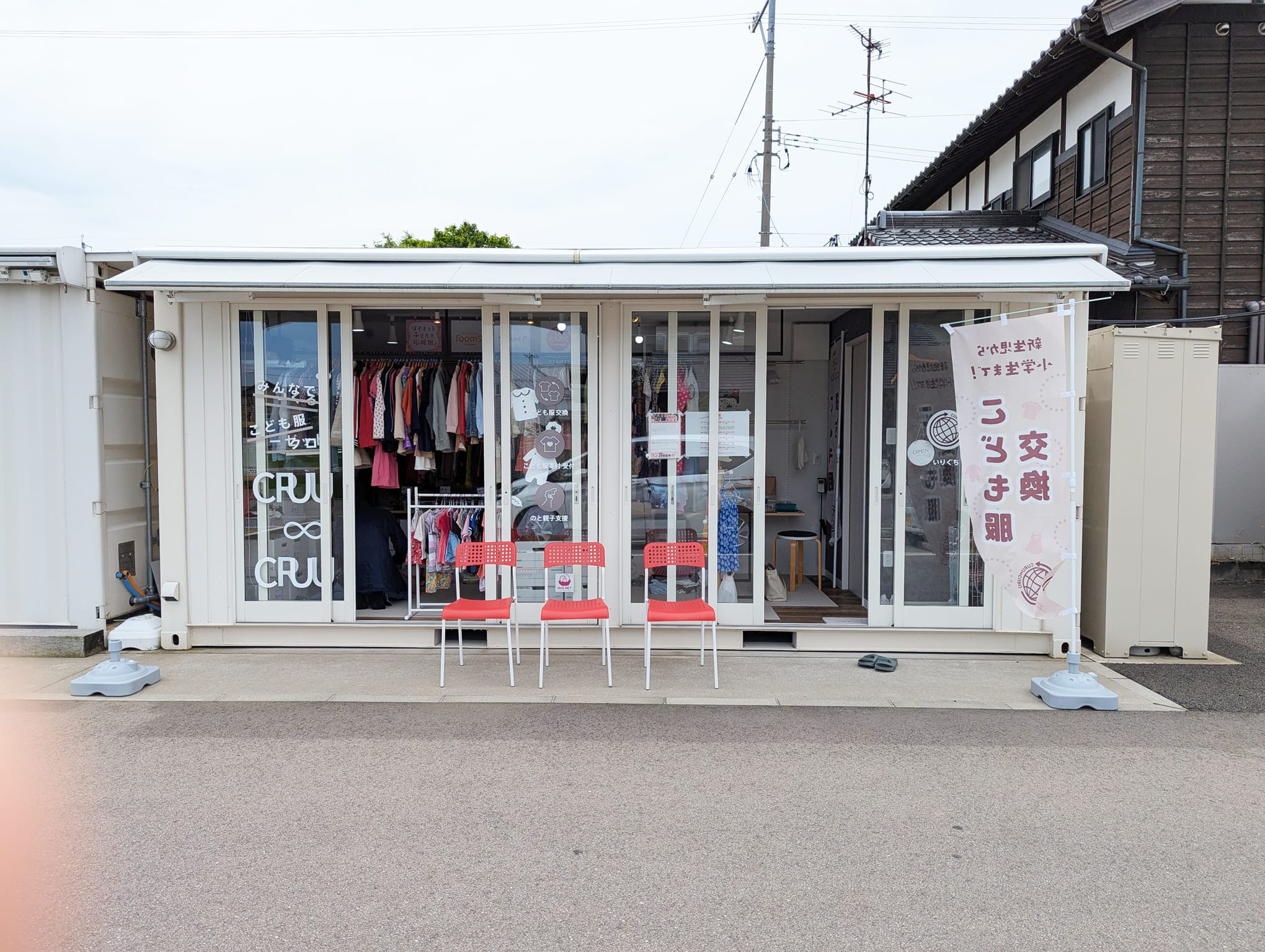 周囲には韓国チキンの「チョアチキン」や、子ども服のお店「くるくるクローゼット」もあり、まるで小さなコンテナモールのような雰囲気。おさんぽ気分でのぞいてみたくなるエリアです♪