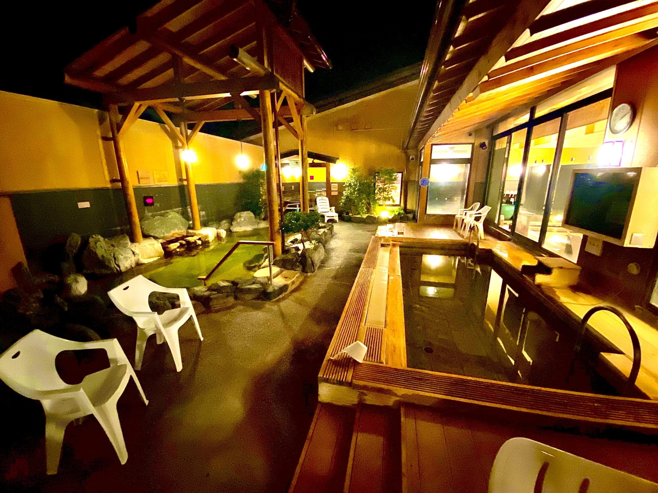 外に出ると、開放感たっぷりの露天風呂エリアが広がります。