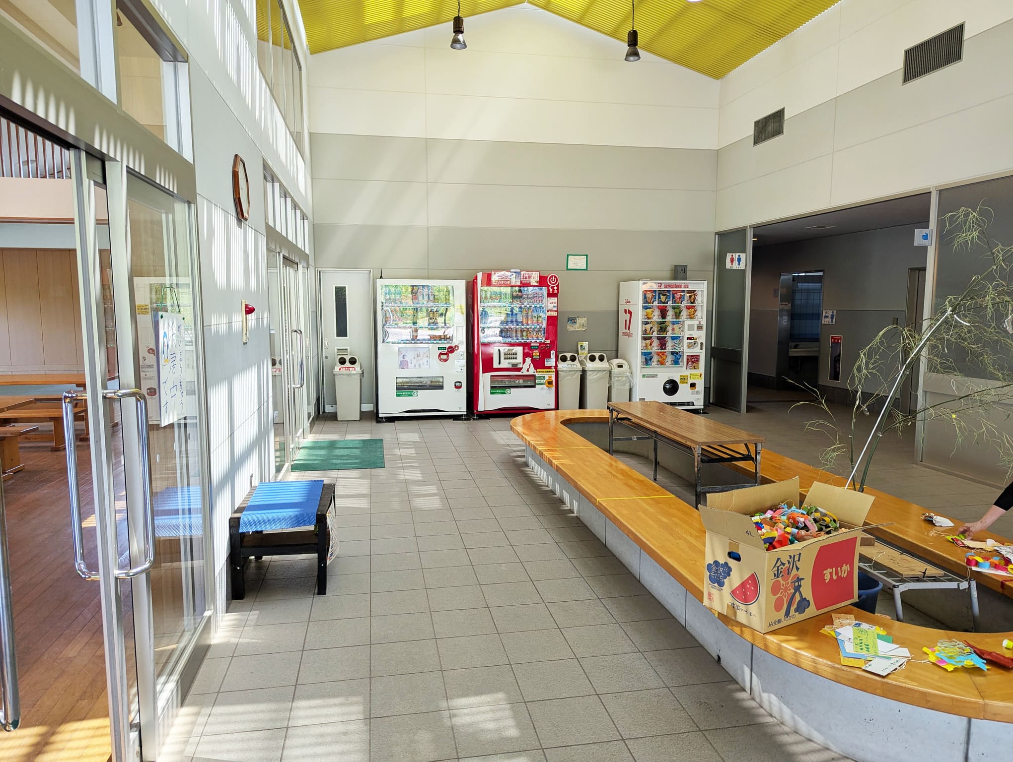 木製ベンチが並んだ休憩スペースに、畳コーナー、授乳室やロッカー、自販機までそろっていて、熱中症対策にもぴったりの空間です◎