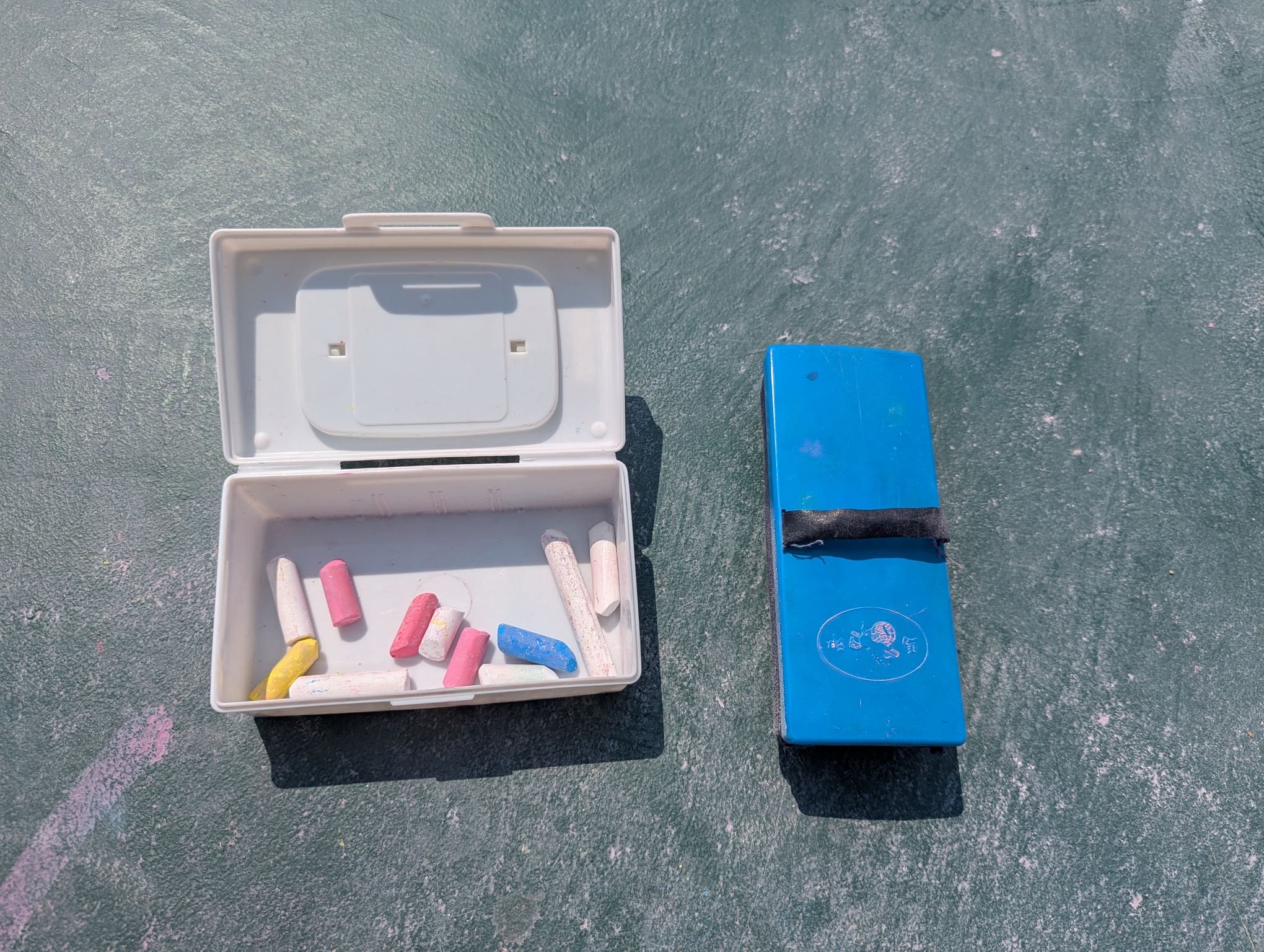 チョークと黒板消しも置かれていて、子どもたちが思い思いに描く様子が見られました♪