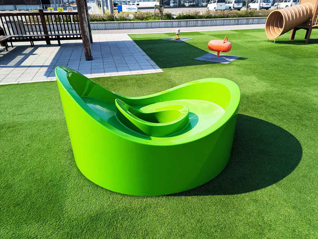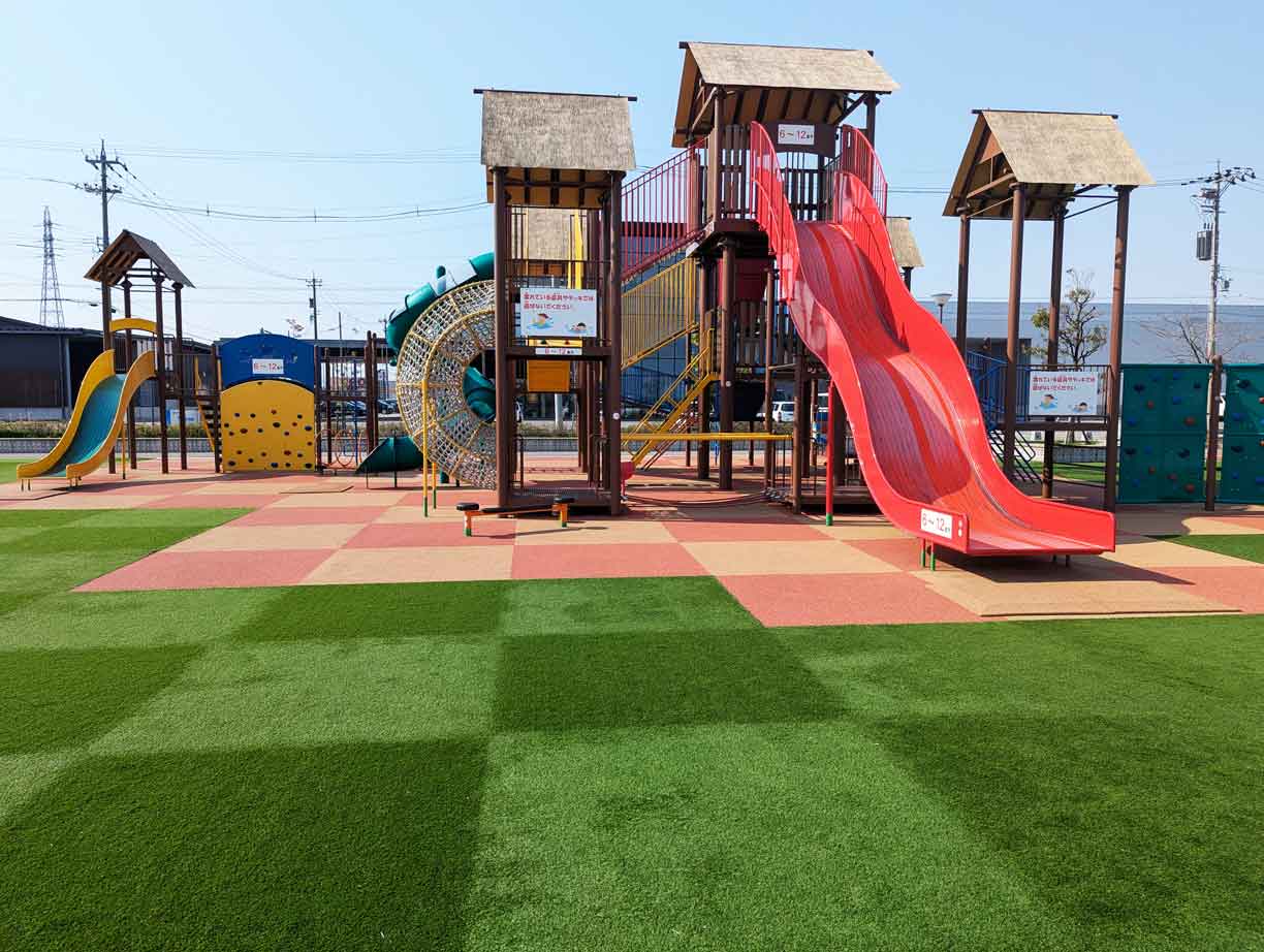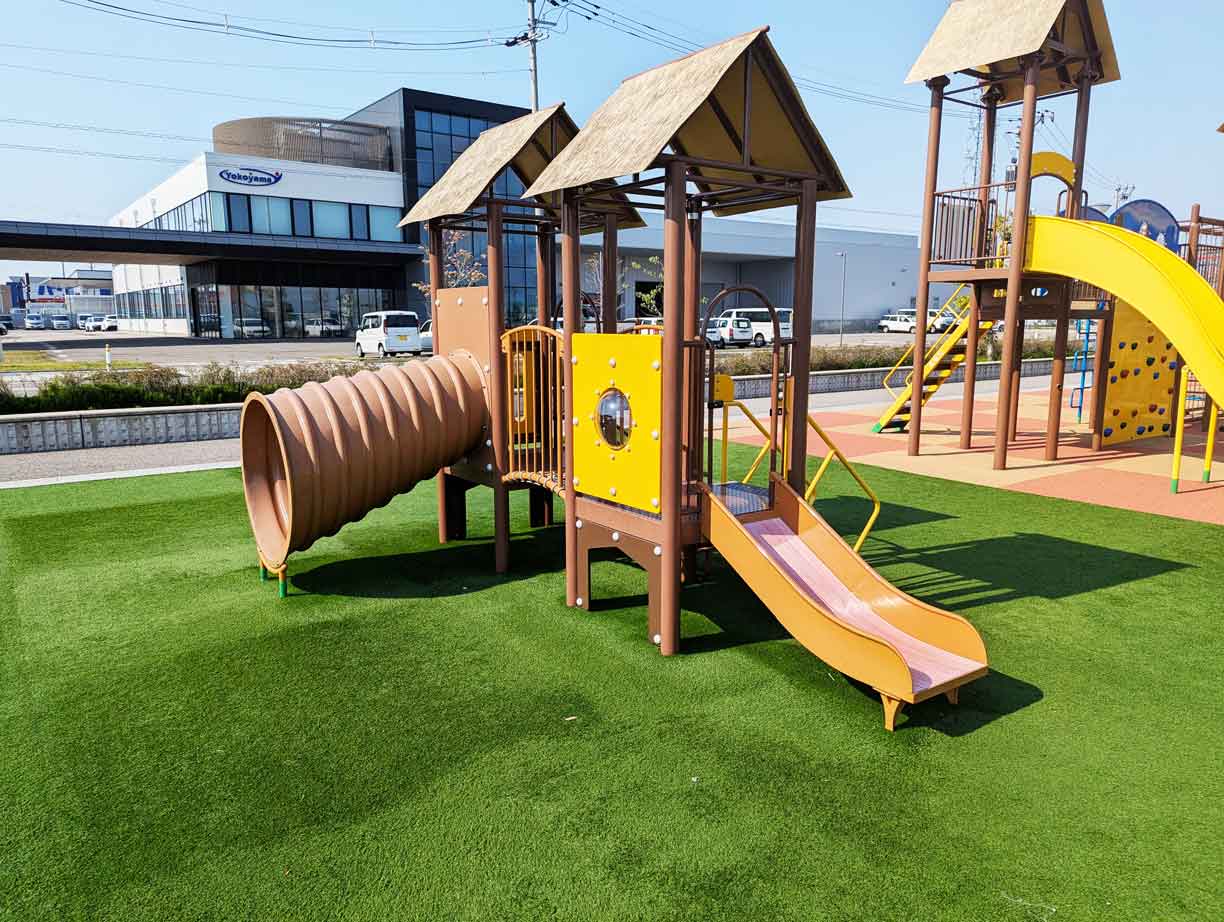 足元はふかふかの人工芝&ゴムチップ舗装なので、転んでもケガしにくく、服が汚れる心配も少ないのがうれしいポイント。