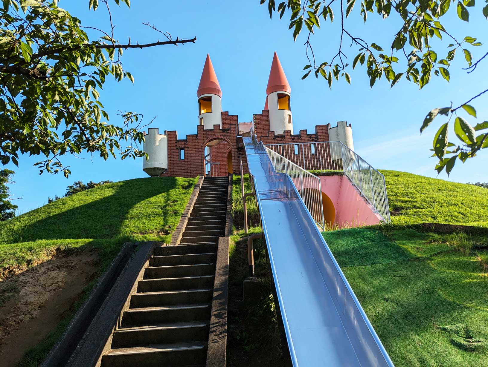 「おしろみたい!」と子どもたちが大興奮するわんぱく城には、長〜いすべり台があり、繰り返し滑りたくなる楽しさ!