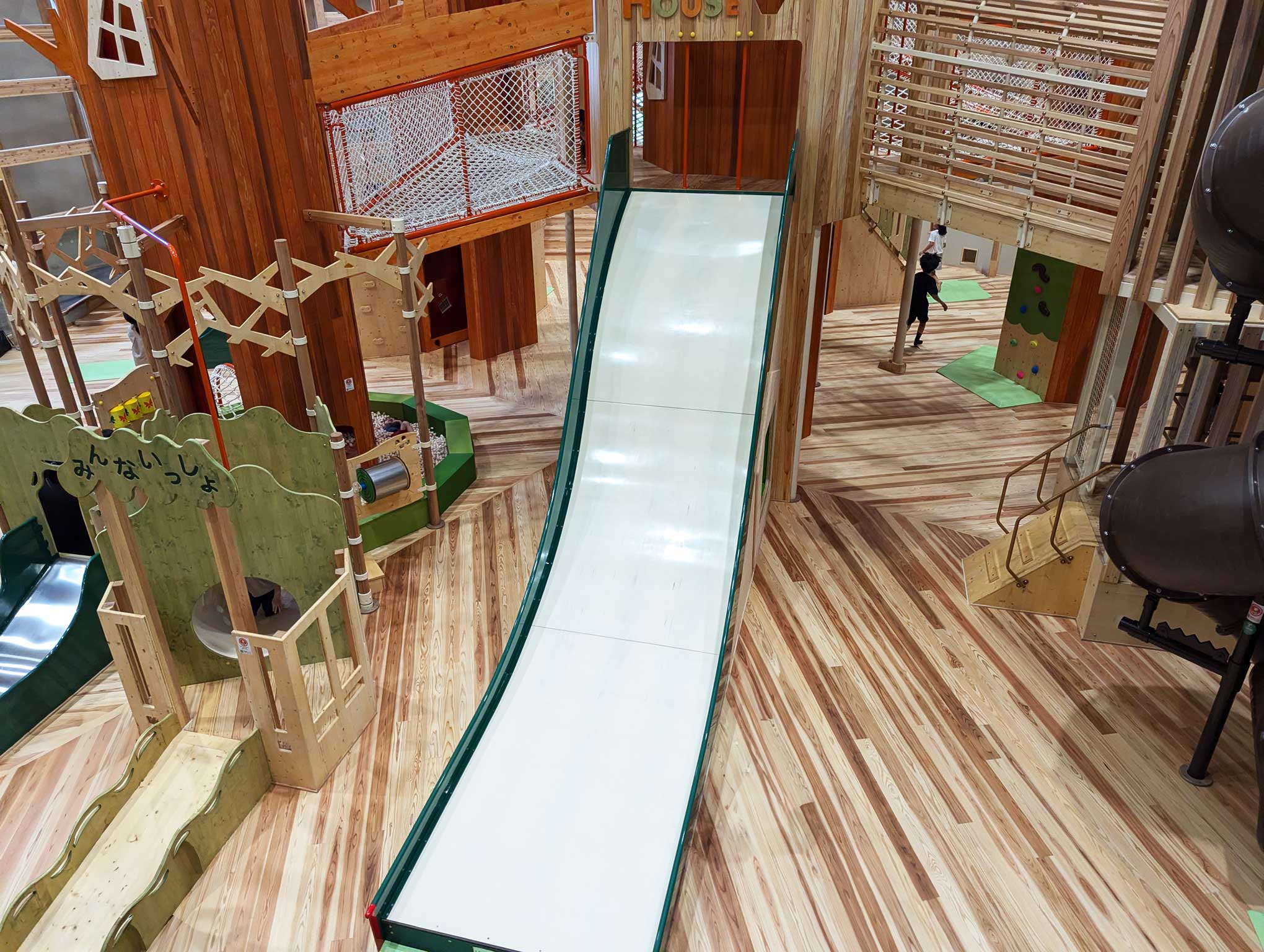 一番人気は、館内の中心にそびえる大きなツリーハウス型の遊具。