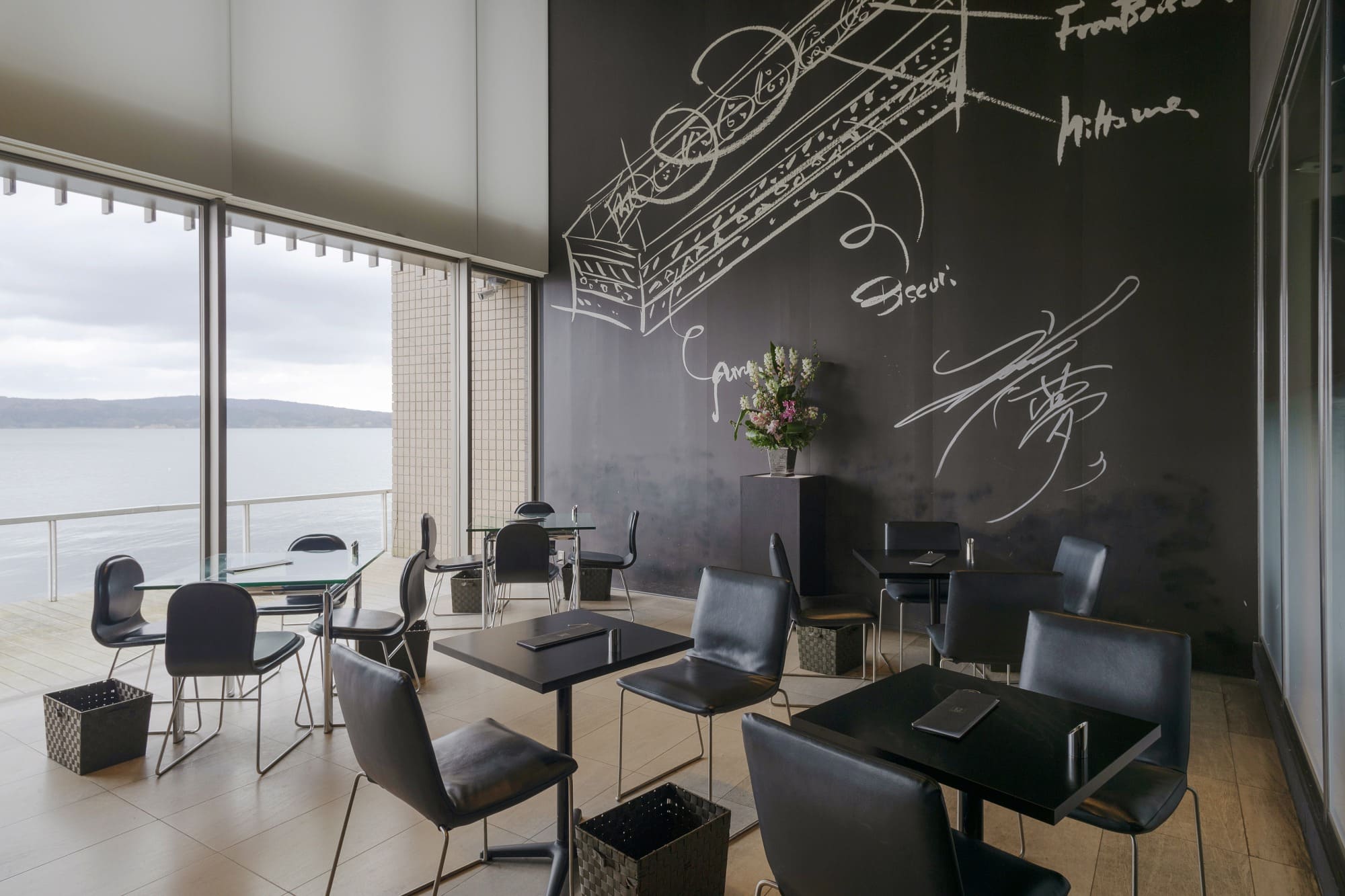 カフェスペースでは、七尾湾を一望しながらスイーツをゆったり味わえるのが魅力!