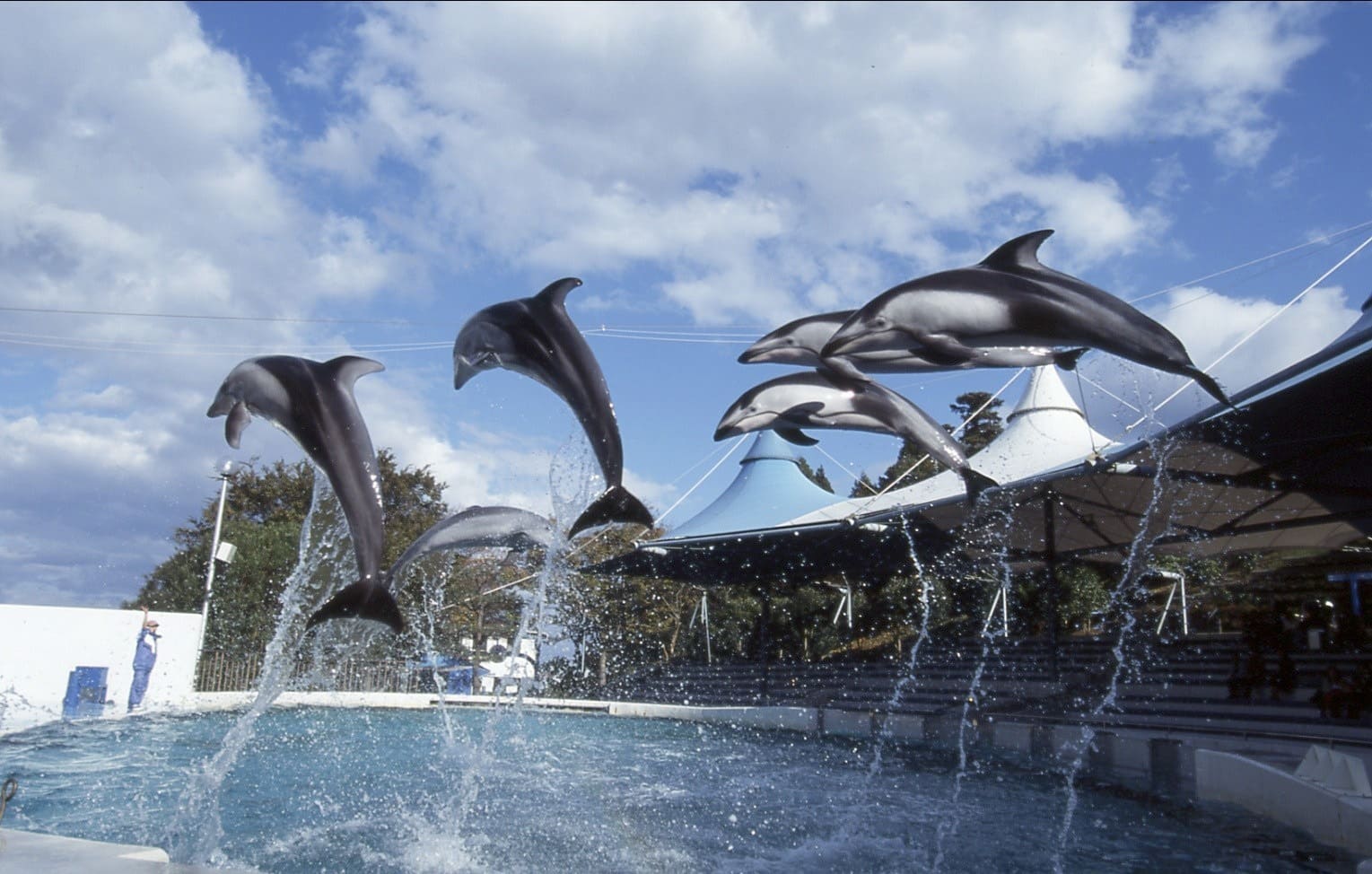 「イルカ・アシカショー」では、息ぴったりのジャンプやダンスに、客席から歓声が!