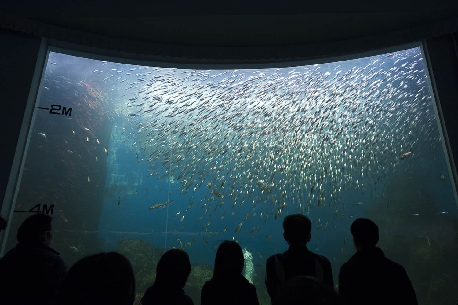 「マイワシのビッグウェーブ」は、数千匹のマイワシが一斉に動くダイナミックな演出。
