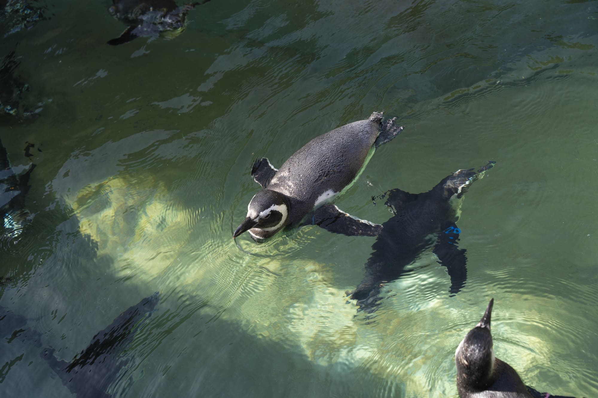 涼しげな水中エリアでは、スイスイ泳ぐペンギンたちにも注目!