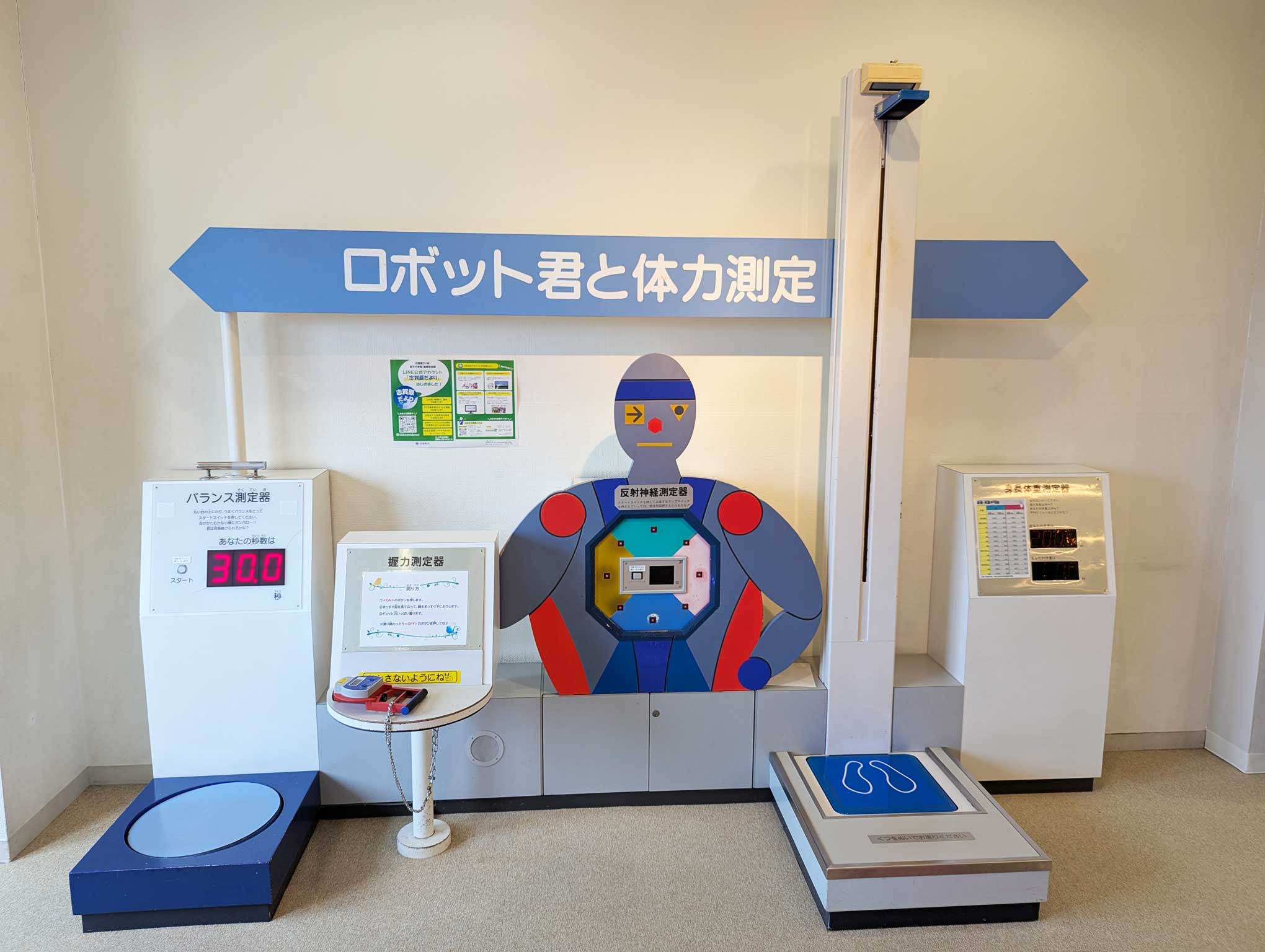 さらに、握力やバランス、ジャンプ力を試せる「ロボット君と体力測定」コーナーも人気!